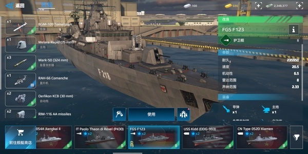 F123是一艘主打鱼雷输出的舰船,自从之前调整了鱼雷命中机制后,它的鱼雷准度变得极高,这也让F123强势起来。带上三发HUWS冲到对面跟前,能直接上演一波血条消失术,要是手头宽裕的话,不妨入手这艘船玩玩。