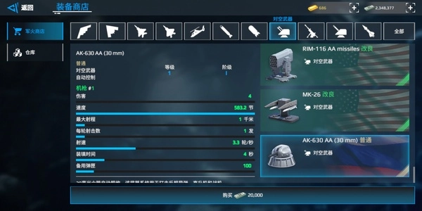 防空方面:730c弹炮一体系统堪称“永远的神”;响尾蛇则是拦截导弹领域的“永远的神”,建议两者搭配使用效果最佳。