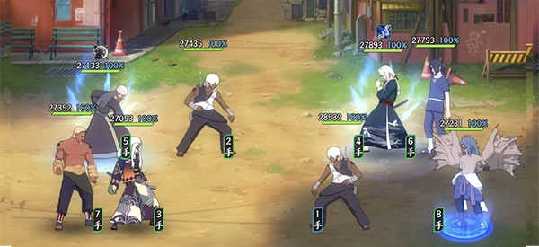 第一回合,三船释放奥义攻击敌方大蛇丸【青年】,却被波风水门【青年】打断。随后双方展开普攻,从图中能看到,尽管我方佐助【须佐能乎】血量所剩无几,但敌方波风水门【青年】在我方忍者的多轮普攻与追打之下败北,因此我方在第二回合能够形成四打三的局面。