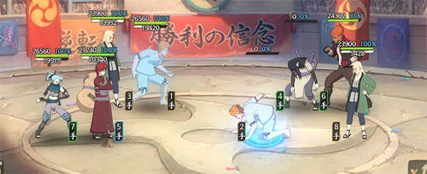 小提示:这个技能的伤害不算高,核心作用是制造混乱效果,具备控制或打断敌人行动的战略价值,而且触发必杀时还能额外获得一次普通攻击机会。因此前期使用纲手时,不用急着放奥义,等触发必杀效果后再释放,这样能多一次治疗,说不定就能逆转局势。