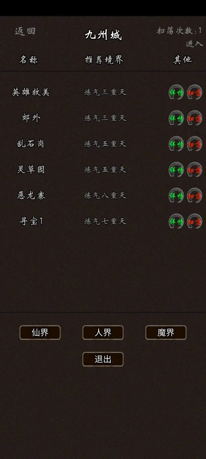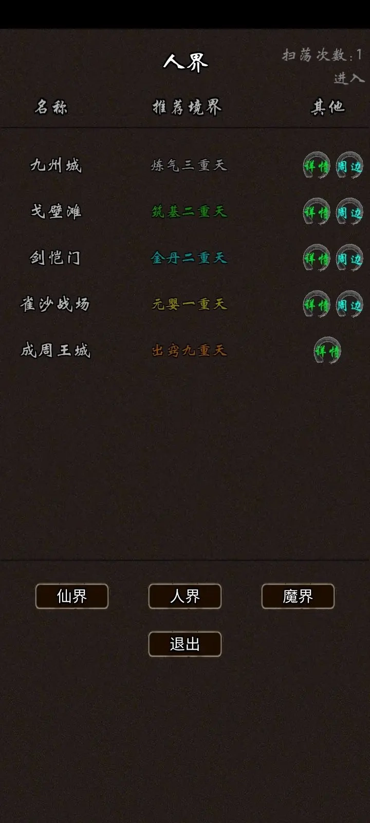 4历练,这里的历练指的是副本,副本分为“人、仙、魔”三界,接下来我会逐一分析这些地图的作用(划重点!!)