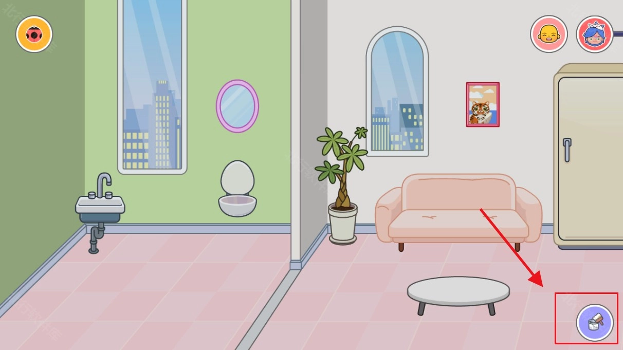 进入一个自建房,点击屏幕右下角的【刷子】按钮