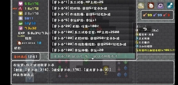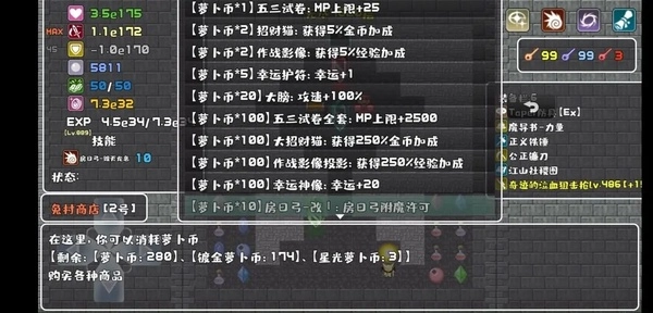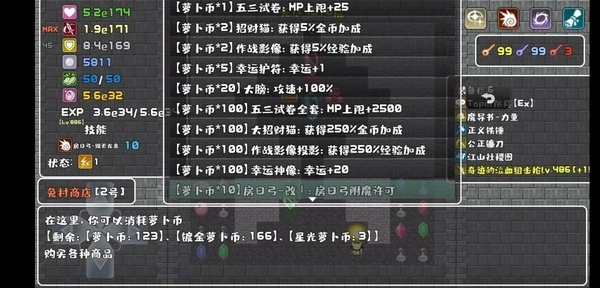 看图1,我当前的萝卜币数量是123和166;再看图2,这是我把10层全部刷完后的萝卜币,显示为280和174。对比下来,两个数值分别增加了157和8。也就是说,如果把10层都刷完的话,瑞比小怜大概能带来157×2.5%=3.925倍的经验加成,以及8×5%=0.4的灵魂倍率提升。而图3是我冲击10层后的萝卜币情况,数值是316和175,对应的增量是36和1,换算成加成就是36×2.5%=0.9倍经验加成,以及1×5%=0.05的灵魂倍率。这样的提升幅度到底有多大呢?