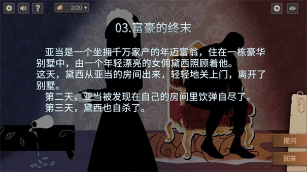 《你已经猜到结局了吗》是一款相当烧脑的推理解谜手机游戏,它以当下流行的“海龟汤推理故事”作为核心卖点:游戏里每个关卡的剧情描述都会刻意隐去一段关键信息,玩家需要依据关卡给出的既定内容,利用有限的提问次数向制作组发问,再结合“是”“否”“无关”这类回答来推理出被隐藏的关键信息,借此揭开故事的真相,最终还原出完整的结局。这款游戏还为每个故事搭配了精美的二次元风格插画,其中不少插画里都藏着可能对推理有帮助的关键线索。你能不能运用所有可用的方法,把被隐去的故事情节推理出来,进而还原出完整的真相呢?不如现在就来试试这款游戏吧!