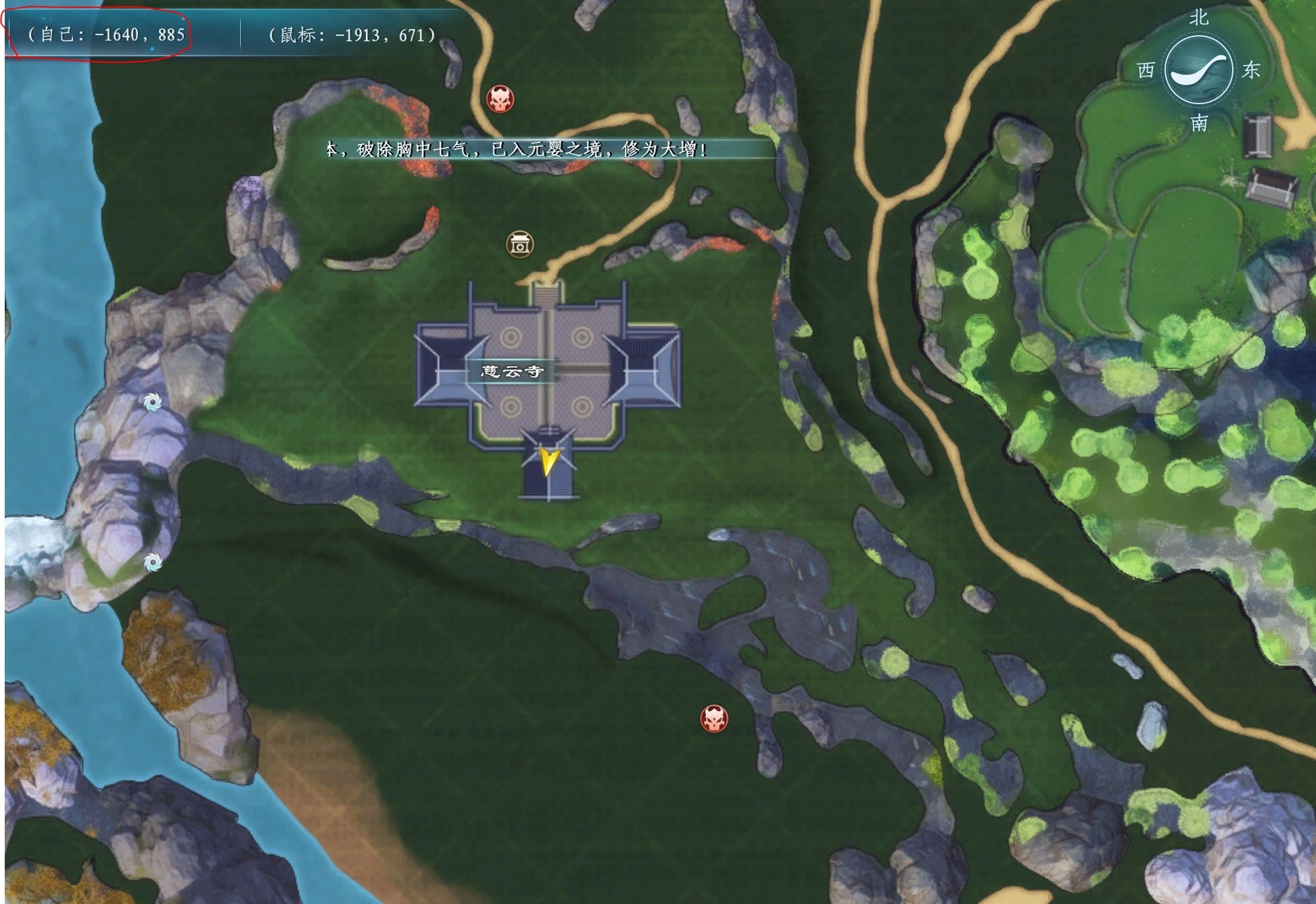 苍茫山铁岭峰的石峰间隙处,坐标为-3327,1728,高度438(御剑时按X键下降更容易发现)
