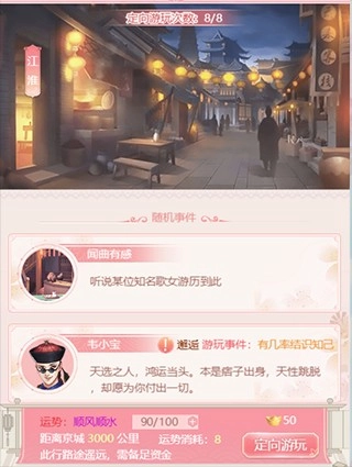 小主可以点击游戏界面右下方的【随机游玩】按钮,随机前往某个地点,既能偶遇不同地点的随机人物,还有机会获取丰厚奖励与道具呢!每次随机游玩会消耗1点体力,体力则每30分钟恢复1点。