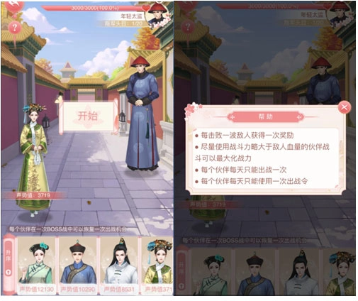 核心玩法是小主持续派遣伙伴攻击容嬷嬷,伙伴的声势值等同于对容嬷嬷造成的伤害量。全服小主将共同挑战同一个容嬷嬷,副本结束后会依据伤害排名发放奖励,而对容嬷嬷完成最后一击的小主即为击杀者,可获得额外奖励。每个伙伴仅能出战一次,不过使用出战令可以额外增加一次出战机会。容嬷嬷的血量并非固定不变,若当日容嬷嬷被成功击杀,次日其血量会自动提升;反之,若未被击杀,血量则会下降。