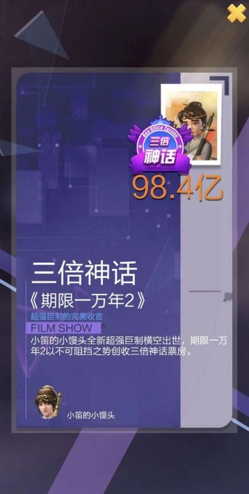 这是一个怎样的概念呢?就好比在原有影片拍摄的基础上,额外增加了4次占总票房5%的“踢”操作,正是这一调整,让众多玩家望尘莫及的双倍神话变得触手可及,甚至在iOS客户端已经有玩家达成了三倍神话票房的成就。