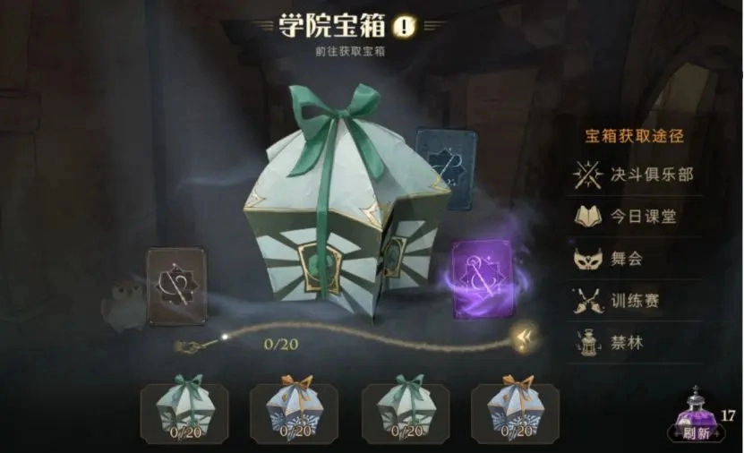 活跃度如何获取呢?点击宝箱会有提示:决斗、上课、跳舞、训练、禁林等方式都能获得活跃度,而且没有次数限制——也就是说,要是你不喜欢PVP玩法,完全可以通过一直跳舞来拿满今日的宝箱奖励。