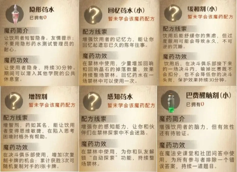 而且内侧不少人对魔药不太重视,但其实魔药在PVE和PVP里的作用都挺大的,我随便截几张图让大家感受下效果(放的是功能性药剂,战场相关的可以去寝室查看)