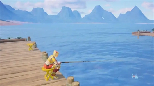 我们来到海边的钓鱼小屋就能钓鱼,钓鱼时看到鱼咬钩、水面泛起浪花波动就提竿,一般都能钓上来哦~
