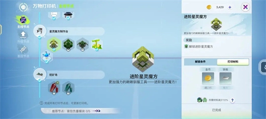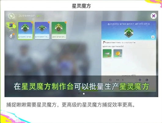 家园建造完成后,小伙伴们要在家园的月兔登陆舱那里完成主线节点任务:打印星灵魔方制作台。这个制作台可以制作捕捉啾啾或者坐骑时需要的必备道具——星灵魔方。不过呢~小伙伴们也能在野外捡到基础星灵魔方~每天最多能捡30个哦~