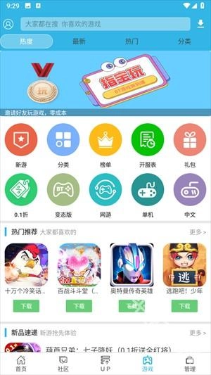 打开软件,进入首页,里面为你提供丰富的游戏资源。