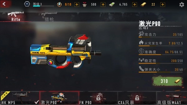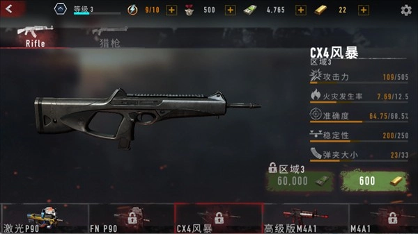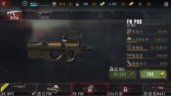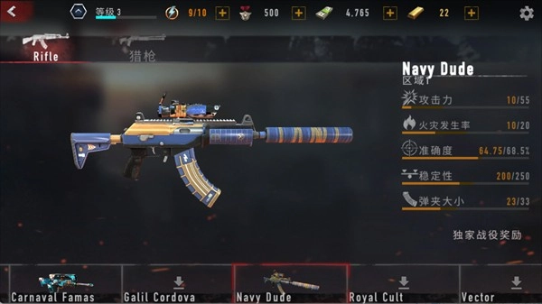 攻击力505,火灾发生率12.5,准确度68.5%,稳定性250,弹夹容量33,解锁条件为60000现金与600金条。