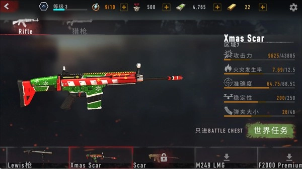 完成场景任务后,能够解锁新的场景和武器,任务进度会实时显示在屏幕左上角。如果任务失败,就需要重新开始当前场景;成功通关后则可以获取积分,这些积分可用于升级武器配件以及解锁特殊装备,从而提升后续场景中的战斗能力。
