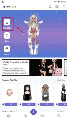 打开永远的天空虚拟装扮最新版本,进入游戏界面后,点击Wardrobe选项开始操作。