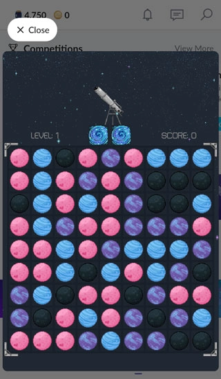 中间部分的小游戏能用来赚星尘,我个人比较推荐2048和星球消消乐这两个。星球消消乐一局要是没成功就给100星尘,成功了就能拿到300,这两个获取星尘相对容易些。
