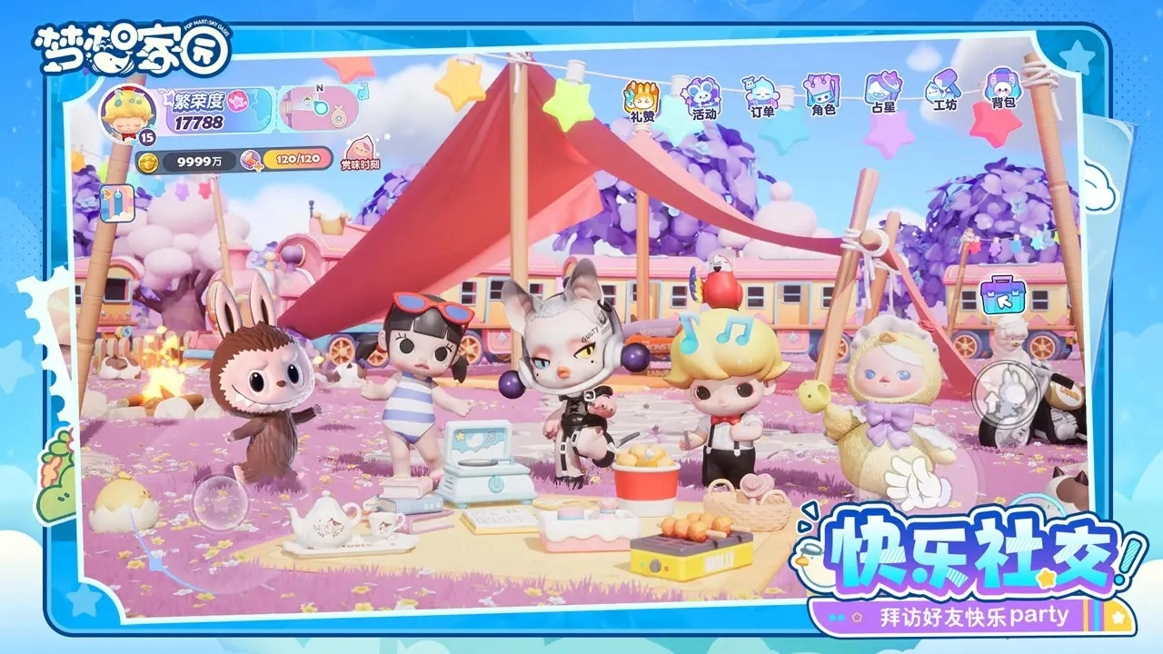 《梦想家园泡泡玛特》是一款融合模拟经营与派对玩法的游戏。玩家将踏入手帐风格的世界,着手重建名为“云鲸岛”的空中家园——在这里,你可以探索各具主题的空中飞岛,参与趣味派对游戏,还能结识性格鲜明、能力独特的伙伴。在云鲸岛上,玩家能体验种田、养殖、钓鱼等生活玩法,收集各类材料来赚取金币、装饰房屋;同时通过抽卡系统获取角色,每个角色都拥有契合自身设定的专属技能。