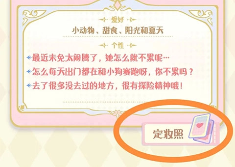 使用角色卡后,可前往角色界面右下角的定妆照处更换形象(悄悄说:换成万圣节主题图的话,背景音乐也会跟着变哦,要是把三张都换回初始图,bgm就会恢复原样啦)。另外,角色描述还会随着女儿的心情变化而改变呢。