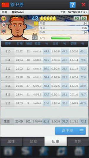 再举个例子,假设你们队里正好有个能力很强的中锋,他的控球数值达到了全队最高的180(要知道组织属性里的控球能力,直接决定了球员是否适合带球持球)。而你们的控卫控球数值反而比他低,这时候你会发现,控卫发球拿到球后,往往会把球交给这位中锋。但偏偏这个中锋只是控球数值高,视野和传球能力却很差,结果就是他要么不传球,一传球就容易被对手断下来。如果你的球队出现了这种情况,那就说明球队的搭配存在很大混乱,连这些最基本的信息都没搞清楚!为了让各位经理人能更好地了解每个球员的具体职能……