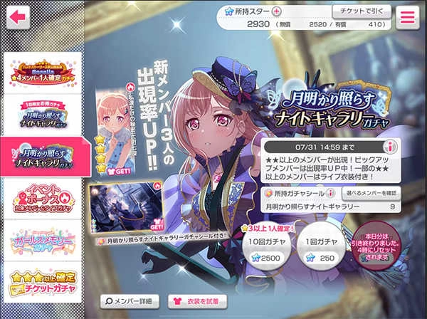 常驻玩家可以选择购买ガルパPass,售价480日元。它能提高使用2个及以上Live Boost时获得的奖励,并且多次购买可累计获取购入次数特典:购买3次可获得米歇尔贴纸x300;购买6次可获得免费石头x2000;购买9次可获得免费石头x2500;购买12次可获得免费石头x5000。