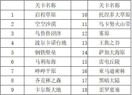 游戏里总共有18个关卡呢~关卡的名称就像下面图片展示的那样,希望各位小伙伴进入游戏后能踊跃探索呀~