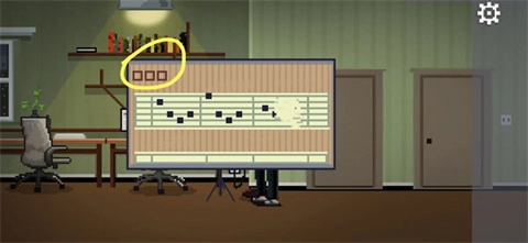 来到客厅左侧对应的房间,在电脑桌旁拼装乐谱,同时了解到三角形代表的数值是3。