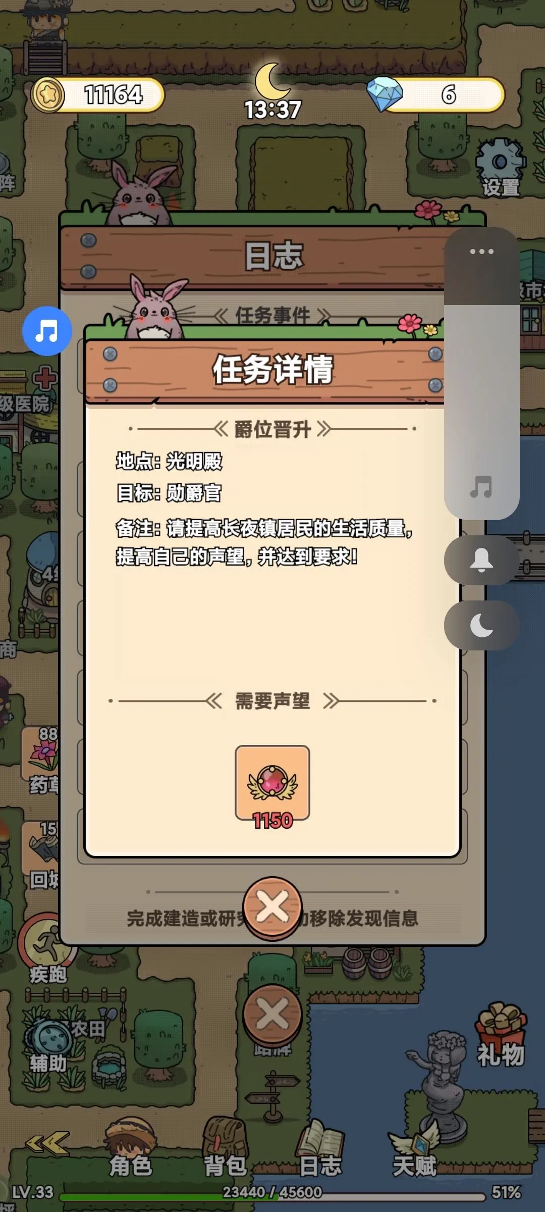 声望可通过发展长夜镇获取,这一点能在大厅中查看;当人口与声望满足相应条件时,即可提升爵位。