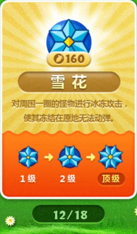 普通的环绕式群体控制炮塔,攻击力处于中等水平,不过因为攻击速度偏慢,通常不会被当作主要的输出手段。但雪花塔是控制类炮塔里的佼佼者,只要有3个满级的雪花塔,就能把怪物完全牵制在原地(可以通过拆除后重建的方式,手动调整雪花塔的输出时间间隔;要是对节奏把控不太好,也可以多增加一两个雪花塔来辅助),在这种彻底的控制状态下,消灭怪物就只是时间早晚的事情了。