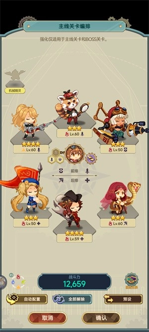 关于配队的建议:如果是火队的坦克位,选阿尔比就可以了。火队的核心定位是输出,加上游戏机制要求在限定时间内击败对手,所以推关时不能依赖坦度,得优先考虑输出能力。