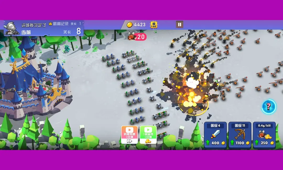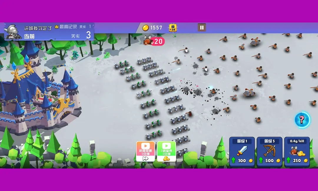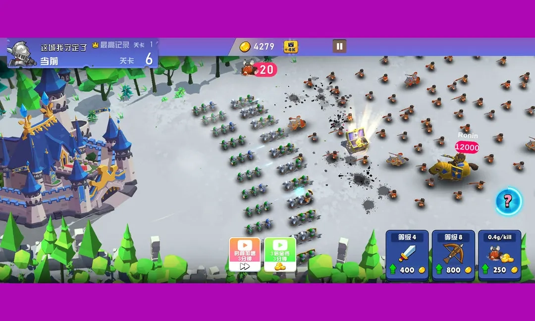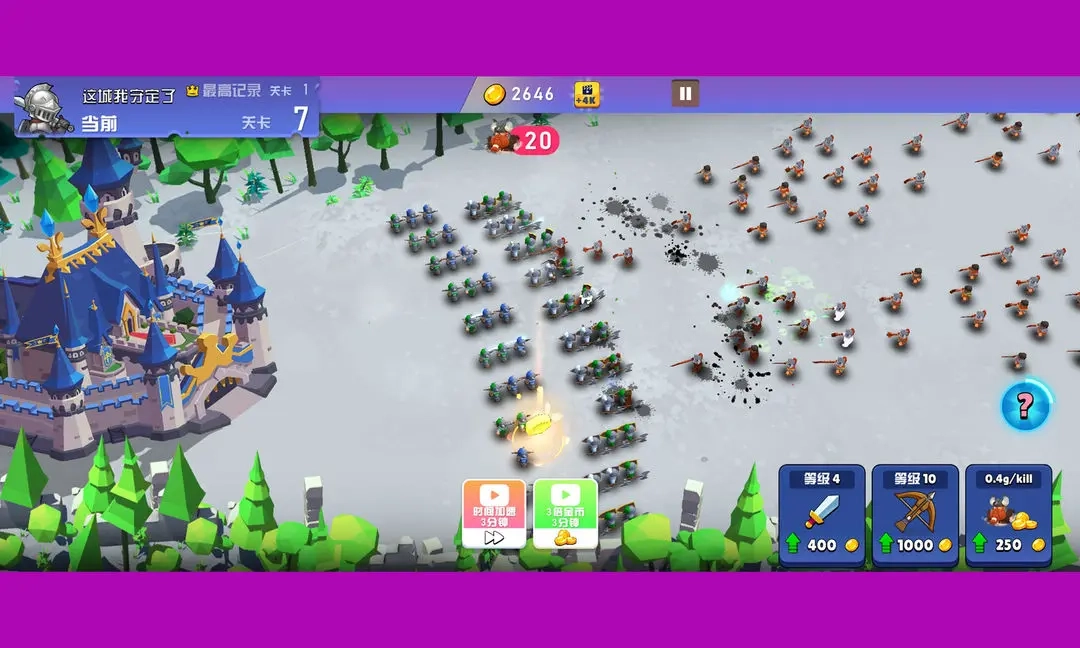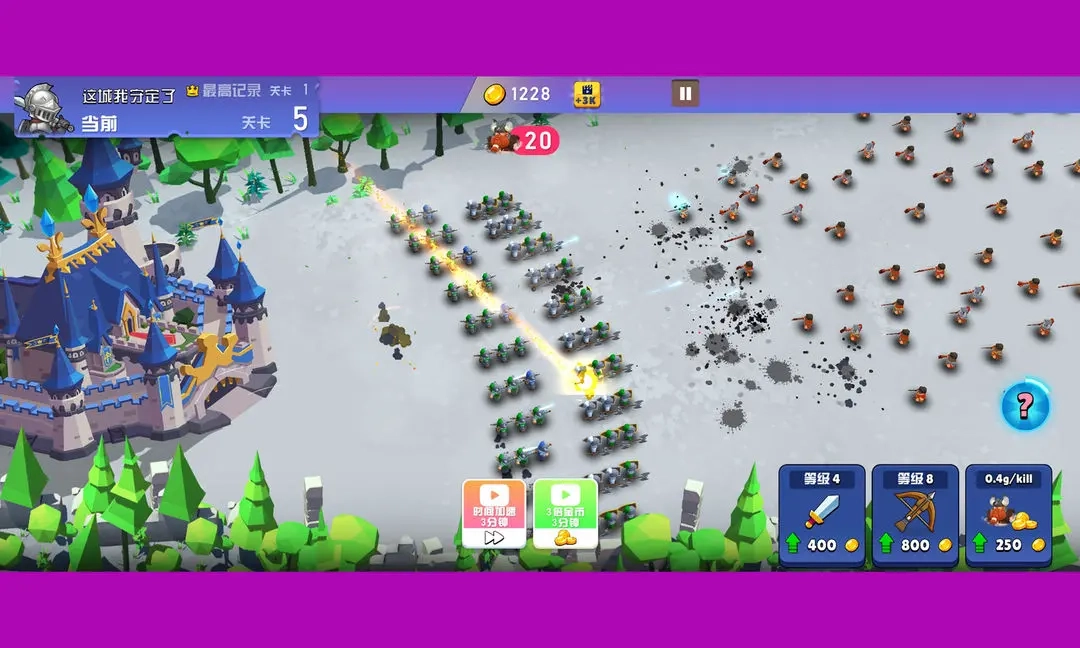 在游戏里,敌人会从屏幕右侧朝城堡发动进攻,玩家需要指挥士兵展开防御。