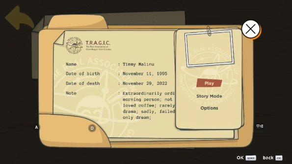 游戏的剧情颇具深意:主角是27岁的青年蒂米·马利努,他最大的心愿是避开人群,穿着睡衣安静地独自在家中离世。当死神告知他生命即将走到尽头时,他便开始努力去达成这个愿望。