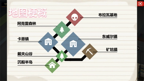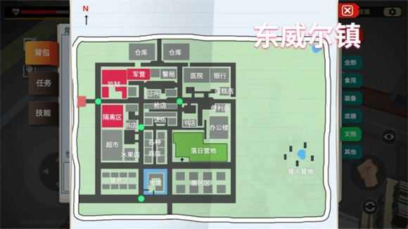 开局建议带上一张东威尔地图、一个背包和一个帐篷,出生点选择东威尔镇,但别在这儿大开杀戒。