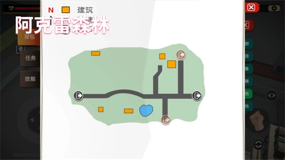 在这里能搜到超多其他镇子的地图,说不定还能找到菜谱或者护甲制作图纸。不过除非你是大佬级玩家,否则不太建议开局就在这儿发育。你可以跟着地图指引前往阿卡雷森林,那里不仅有丰富的食物资源,还有大量的树木可以利用。