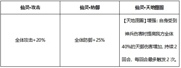 从伤害数据角度来看,战斗开场时敌军全体将承受5000%的天御神兵伤害,这为山河社稷图的特殊定位奠定了基础。作为该神兵的携带者,还能通过神兵必杀获得主动出手时的追加效果——对带有【囿于一隅】或【执于一端】状态的武将,额外造成3000%的天御神兵伤害。此外,【天地之外】效果会让全体友军在出手阶段,对敌军额外施加1000%的天御至尊伤害。