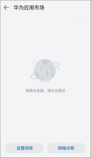 4、如果操作正确,我们会进入华为应用市场,但是此时是断网状态,点击返回即可!