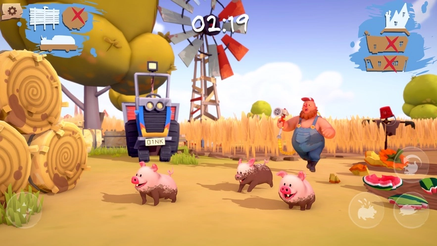 角色扮演:玩家可以选择扮演笨手笨脚的农场工人,努力维持农场的整洁;也可以选择加入调皮捣蛋的小猪阵营,尽可能多地制造泥泞。