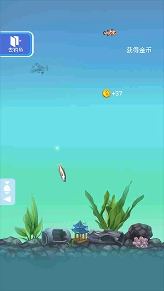 不断钓鱼获取金币升级装备,钓更优质的鱼类。