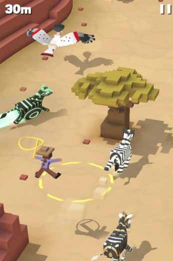 《疯狂动物园》的原名为Rodeo Stampede,作为一款曾斩获2016 IndiePlus全球大奖的优质游戏,它凭借3D像素风格融合跑酷与模拟养成的独特玩法,成功吸引了玩家的目光。在游戏过程中,玩家将化身一位英姿飒爽的套“牛”达人,在快速移动的状态下驾驭各类动物疾驰前行,与此同时,还需尽量驯服更多动物,并将它们全部带回动物园进行饲养。对于热衷于跑酷类游戏的玩家而言,不妨即刻开启这场前所未有的既虐心又刺激的跑酷之旅。