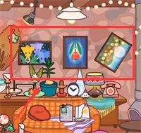 来到三层别墅后,按照顺序将客厅里的三幅画摆放好,只要摆到与阴影完全重合的位置,就能解锁录音棚了。