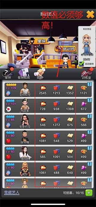所以小编建议大家,要及时对演员进行升级和培养。要是条件允许,不妨用钻石来提升演员的属性。只要能确保演员的等级上限随着街区档位的提升而提高,最终达到二百零一级解锁第三个技能,那么艺人的等级和属性就完全够用了。
