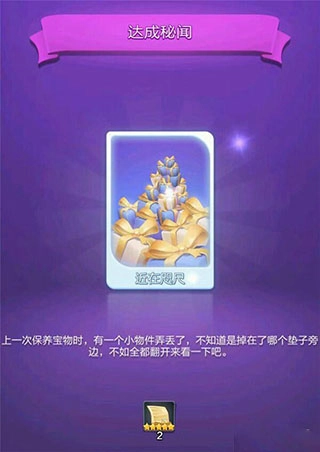 游戏内秘闻“迫在眉睫”的完成方法:点击收藏房间里的5个宝贝垫,等所有宝贝垫都触摸完毕后,就能解锁隐藏秘闻“迫在眉睫”了。