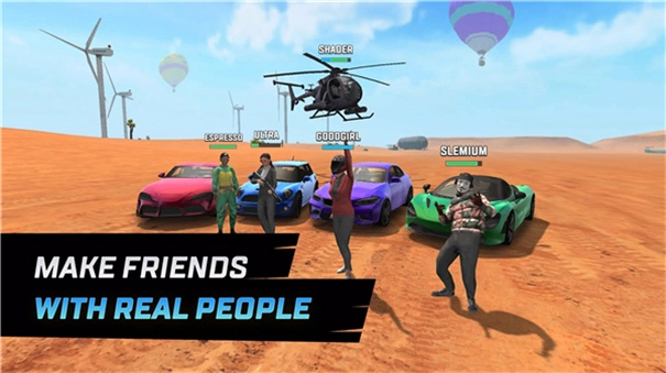 探索丰富多样的游戏场景:繁华都市、广袤沙漠、金色海滩、繁忙机场、大型港口、蜿蜒漂流道、市井贫民区、奢华高端区以及繁忙的建筑工地等。在这些地方,你能遇到各种有趣的元素,比如跳跃和特技区域、高速测速雷达、激烈的枪战、紧张的追捕与警察追逐战。同时,漂移玩法和PVP模式也都可供体验!