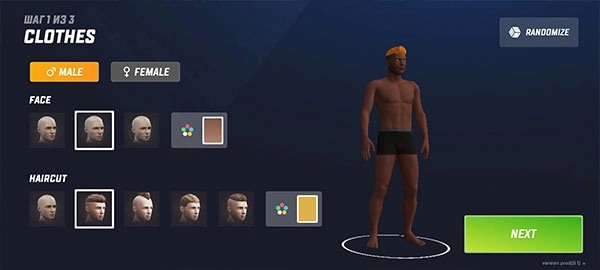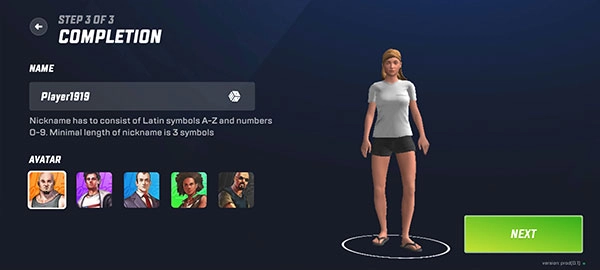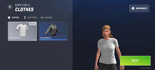 为角色挑选一套衣服,这套衣服将作为初始的免费服装,选好后点击NEXT按钮进入下一步操作。
