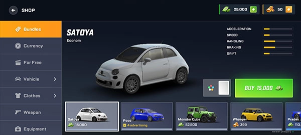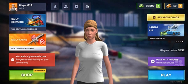 随后正式进入游戏界面,左上角显示昵称信息,右上角呈现当前资金,点击左下角的SHOP按钮即可进入商店。
