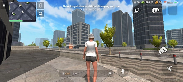 左上角显示着地图,黄色按钮标记的是你自己,白色小圆圈代表其他玩家,地图上还分布着各类金钱、武器和汽车等资源,在确保安全的前提下,尽情自由探索吧!