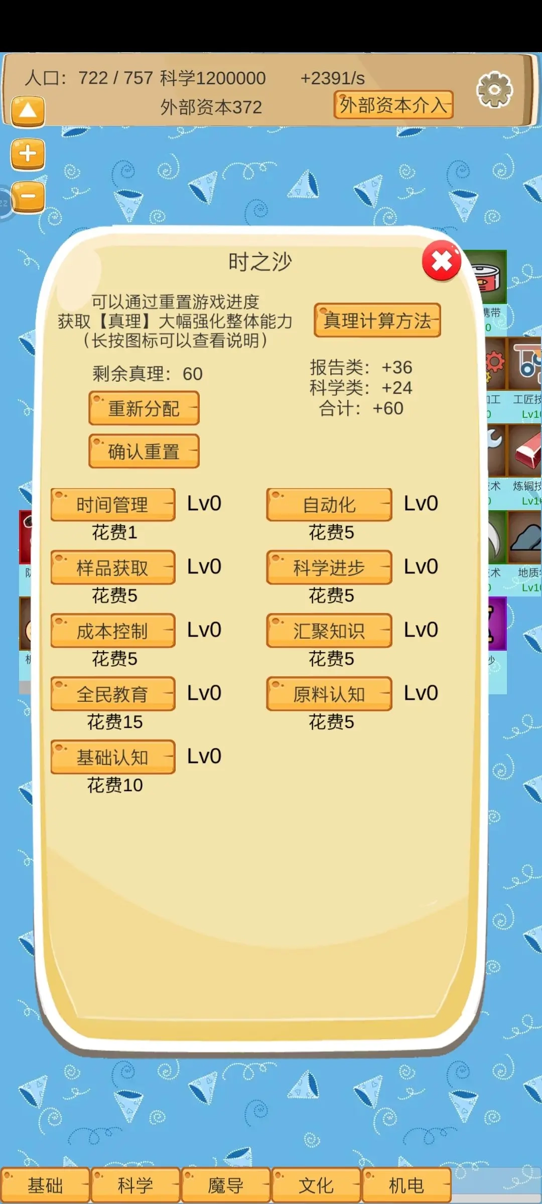 首周目建议:先把时间管理、科学进步、全民教育和基础认知这四项各点到1级,剩下的可以随意选择加点。