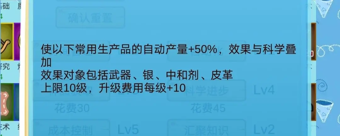 科学进步,11级解锁部分科学特殊效果,必点。