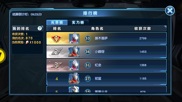 排行榜分为两大板块:“光荣榜”与“实力榜”。