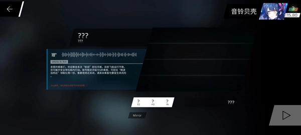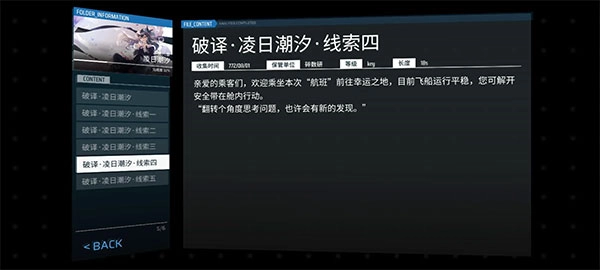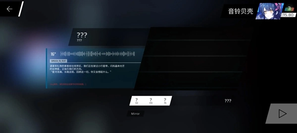点击进入后,曲名、难度和曲绘都被隐藏了。左侧有一段文字,这便是留下的线索。从中提炼出关键词“微波加热区”,同时线索还提示要在主线里寻找相关信息。由此,我们很快就想到了对应的曲子!